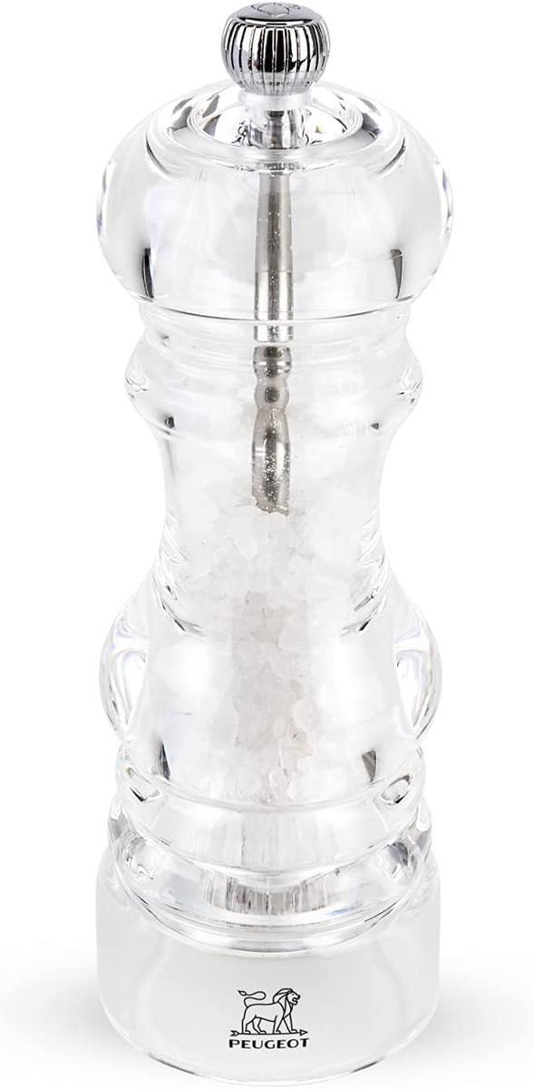 Deze stijlvolle Peugeot Zoutmolen Nancy heeft een hoogte 18 cm en is gemaakt van transparant acryl. Met deze zoutmolen kan je niet alleen gemakkelijk gerechten voorzien van een snufje zout, hij staat ook nog eens mooi op het aanrecht. Het transparante acryl zorgt ervoor dat je de inhoud goed kan zien en geeft de molen een rustieke uitstraling. Het maalwerk is gemaakt van gehard staal door aan de knop op de bovenkant te draaien kan je gemakkelijk de maalgrofheid instellen.