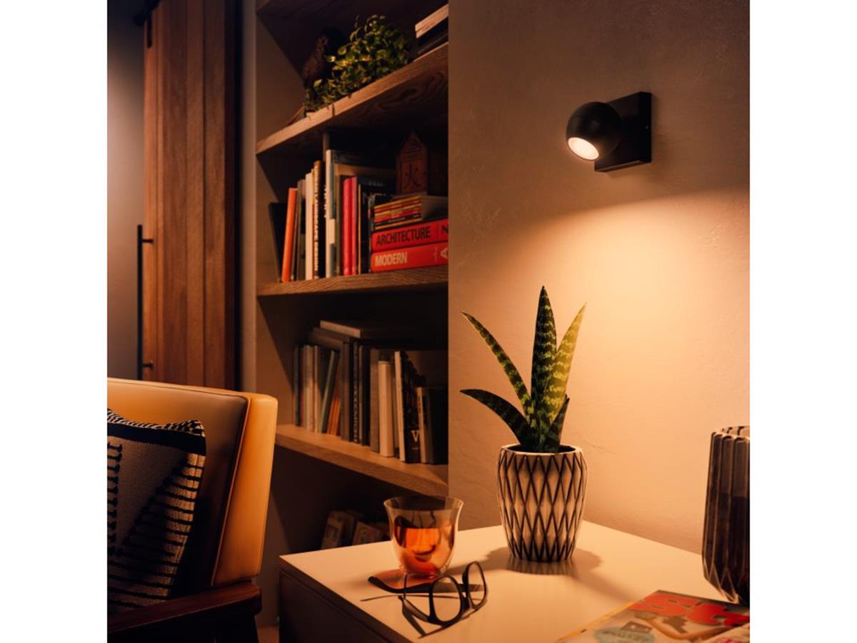 Met deze zwarte Philips Hue White Ambiance Buckram Spotbalk heb je één lichtpunt voor het verlichten van de kamer. Elke GU10 LED lichtbron heeft een wattage van 5 Watt en geeft warm- tot koelwit licht. Stel de spot zo af dat de juiste hoeken van de kamer worden uitgelicht en profiteer van draadloze bediening met de meegeleverde Hue dimmer switch of Hue app. Wanneer je de opbouwspot verbindt met de Hue Bridge, ontgrendel je alle slimme functies.