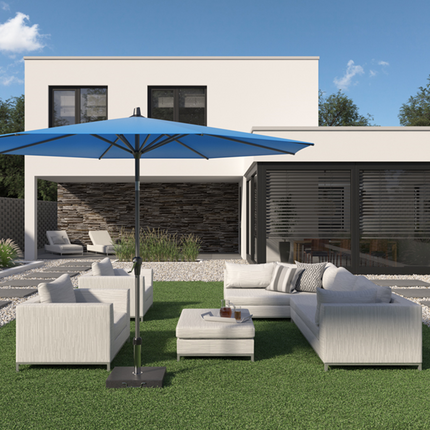 Wanneer je de parasol langere tijd niet gebruikt, adviseren we om hem in te klappen en te beschermen met een stevige parasolhoes. Een parasolhoes en een parasolvoet worden standaard niet meegeleverd, maar kun je wel optioneel bijbestellen.