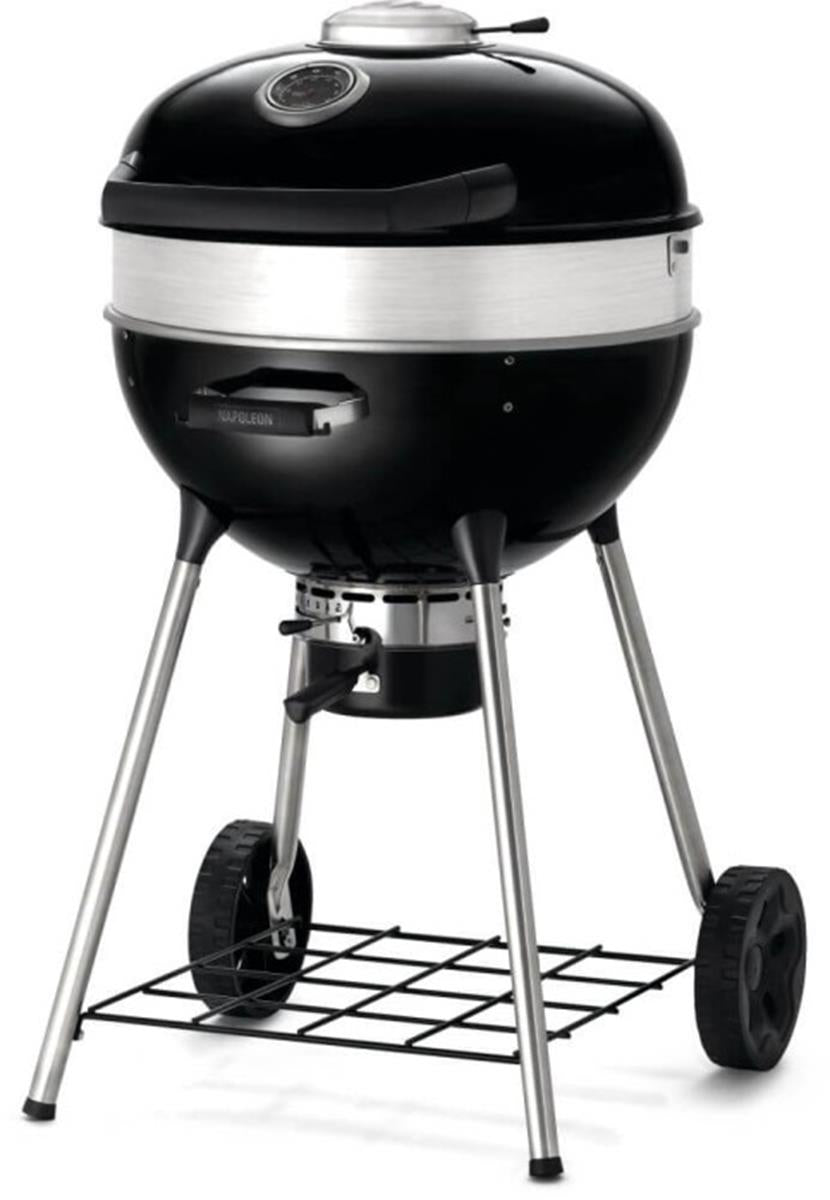 De flexibele PRO22K-LEG houtskoolbarbecue van Napoleon is een ideale barbecue van 22 inch (56 cm) voor elke liefhebber van grillen op houtskool. Grill of rook gerechten met uw favoriete houtsoort. Gietijzeren grillroosters kunnen op drie verschillende niveaus geplaatst worden, ideaal voor elke manier van barbecueën. Deze scharnierende grillroosters zijn ideaal voor het toevoegen van houtskool, houtsnippers of houtbrokken in de barbecue. Wanneer u gaat grillen op houtskool is het belangrijk dat u de temperatuur kunt regelen door middel van de luchtstroom. Het geïntegreerde schoorsteensysteem beschermt uw barbecue tegen wind of regen en garandeert ook een nauwkeurige temperatuurregeling. Het Vortex-systeem regelt de temperatuur en verbetert de verdeling van hete lucht in de barbecue, waardoor u sneller en beter kunt roken en grillen met een lager brandstofverbruik. De RVS uitbreidingsring is geschikt voor installatie van een draaispitset, met afdekkappen op de spitopeningen. Geïntegreerde deurtjes voor thermometers zorgen ervoor dat uw gerechten geheel volgens plan bereid worden. Het stevige geëmailleerde stalen frame is slijtvast terwijl het scharnierdeksel genoeg ruimte biedt voor toegang tot het hele grilloppervlak.