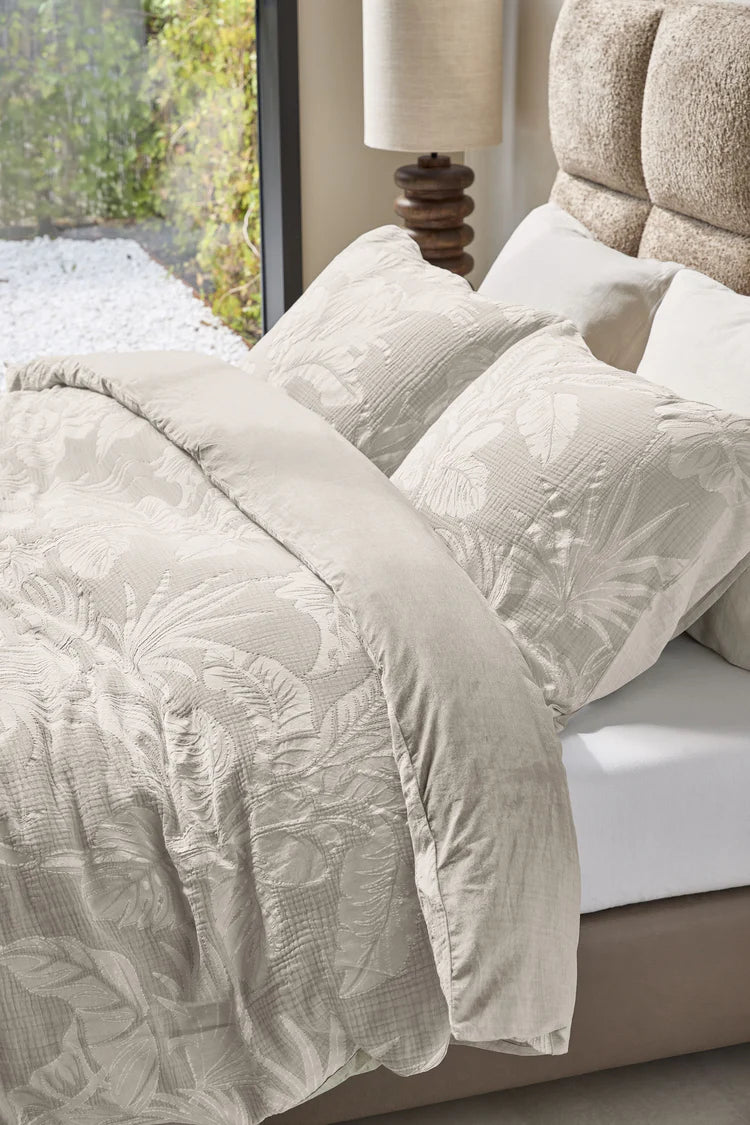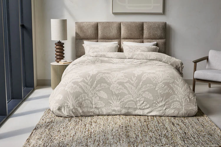 Het design Botanica toont een verfijnd botanisch patroon met gedetailleerde bladeren en natuurlijke vormen die een rustgevende sfeer oproepen. De...