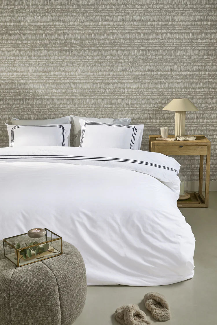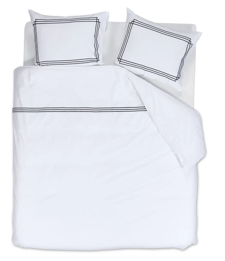 Dekbedovertrek Leandro is perfect voor iedereen die houdt van hotelchique. De verfijnde belijning in een dubbel kaderpatroon geeft dit ontwerp...