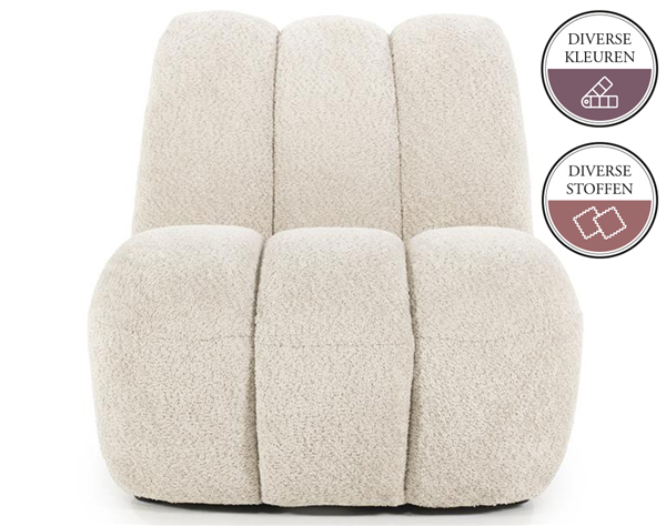 HOLLY brengt een speelse en comfortabele flair in je interieur met haar ronde vormen. De brede, zachte zitting en opvallende verticale banen maken HOLLY tot een uitnodigende plek om te relaxen. Perfect voor wie houdt van een opvallend maar toch knus element in huis.