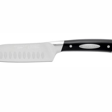 Dit santokumes van het Deense kwaliteitsmerk Scanpan is afkomstig uit de Classic-collectie. Het mes heeft een uitstekende gewichtsverdeling en balans. Het ergonomische handvat zorgt voor een comfortabele en veilige grip. Het mes is gemaakt van de hoogte kwaliteit Duits staal. Het lemmet is optimaal getemperd tot hardheidsclassificatie van 56. Kortom een mes dat zeker niet mag ontbreken tussen uw keukenmessen.