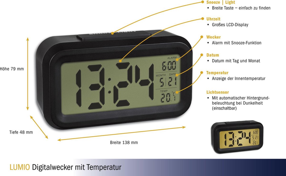 TFA digitale wekker met temperatuur Lumio - zwart TFA Deel dit product WhatsApp Deel X Pin it Messenger Email Productformulier Artnr : 60201801 Barcode: 4009816030924 €19,99 Aantal In winkelwagen Gratis verzending boven € 60,- binnen Nederland*Gratis retourneren