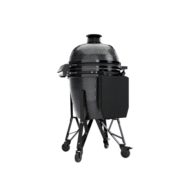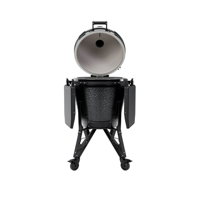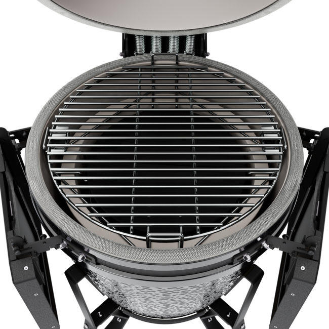Het gebruik van extreem hittebestendig cordieriet keramiek zorgt voor uitstekende isolatie en een constante temperatuur binnen een bereik van 80°C tot 350°C. De glanzende Gloss Graphite afwerking (antraciet) geeft deze kamado een luxe uitstraling die direct opvalt in iedere tuin of buitenkeuken.