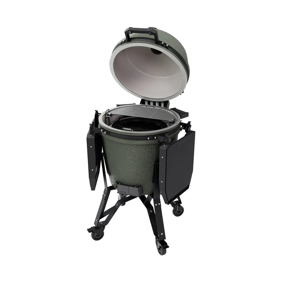 The Bastard Pro Large is de op een na grootste Kamado barbecue uit The Bastard familie Met zijn royale formaat en geavanceerde innovaties tilt deze kamado jouw barbecue-ervaring naar een hoger niveau. Nu verkrijgbaar als complete set, inclusief een robuust onderstel met zijtafels voor extra werkruimte. Met The Bastard Pro haal je niet zomaar een kooktoestel in huis, maar een krachtig en stijlvol keramische barbecue dat elke culinaire uitdaging aankan.