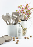 Deze handige Tools2Cook lepel in de kleur nutmeg grey is gemaakt van siliconen en krast niet in een pan met anti-aanbaklaag. De lepel heeft een fijne handgreep met goede grip, is stevig zodat deze gemakkelijk draait en roert in je pan. Daarnaast is hij ergonomisch en voelt zacht aan. Siliconen is heel hitte bestendig (tot wel 230 °C), stevig én duurzaam. Kortom: een onmisbaar hulpje in de keuken!