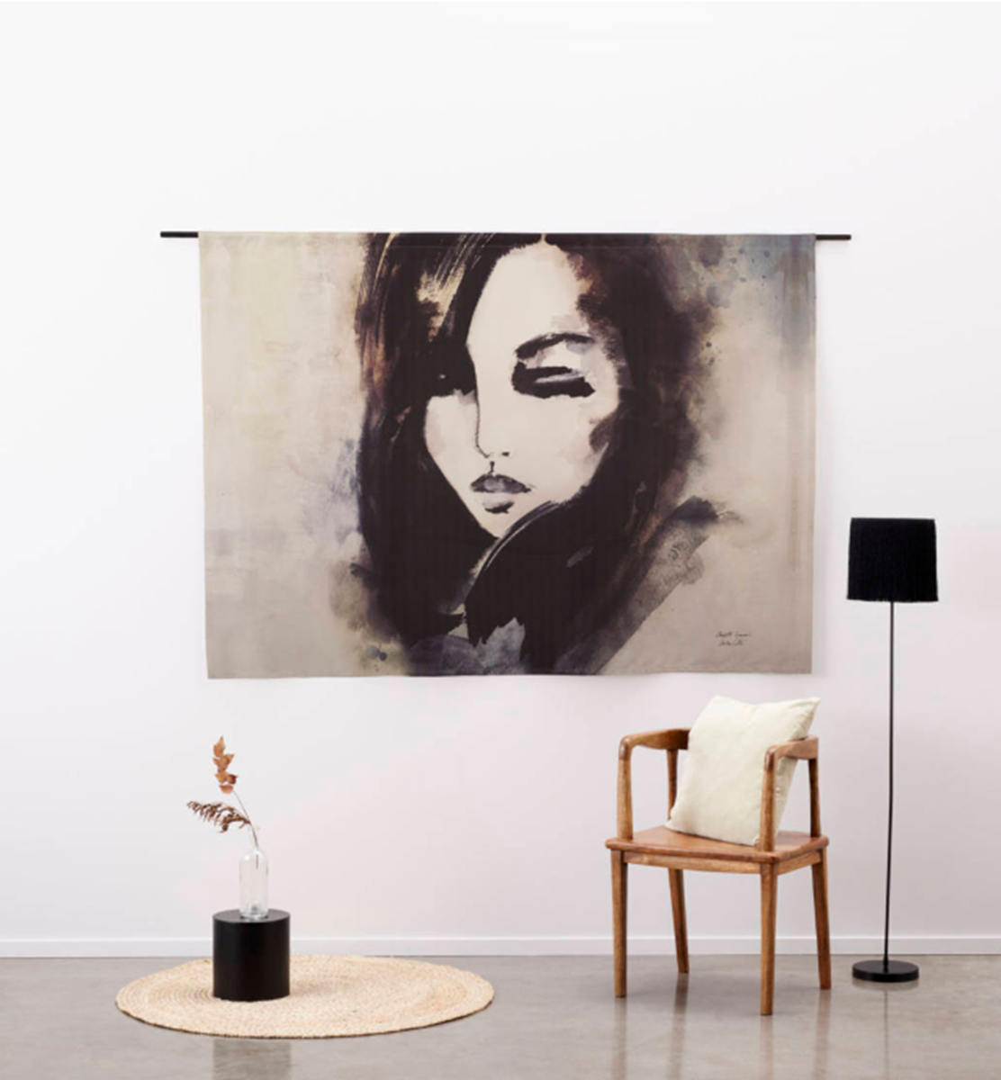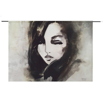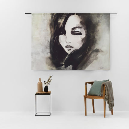 De inspiratie van dit Urban Cotton wandkleed was het mystieke. De kunstenaar heeft onderzocht hoe iemand afgebeeld kon worden die zowel kracht als liefde uitstraalt. Dat werd een bijzondere studie waarin donkere materialen centraal stonden. De gesloten ogen geven het portret een contemplatieve sfeer. De gebruikte technieken zijn waterverf en gewassen inkt.
