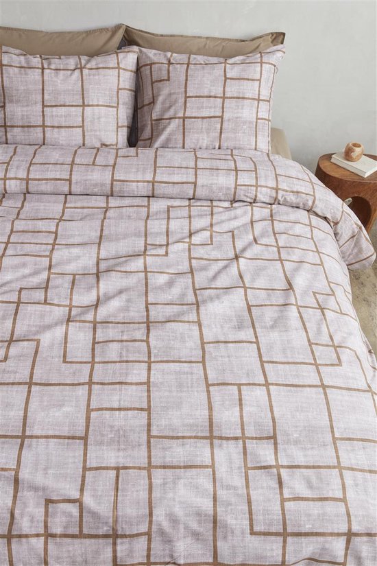 Het dekbedovertrek Pojagi van vtwonen is geïnspireerd op de gelijknamige Koreaanse textieltechniek. Dit prachtige ontwerp met een subtiel lijnenspel op een geprinte linnenstructuur geeft je slaapkamer een moderne uitstraling. De warme bruintinten in combinatie met terra creëren een knusse sfeer waarin je heerlijk kunt ontspannen. Het overtrek is aan de voor- en achterkant hetzelfde.Het dekbedovertrek is gemaakt van 100% katoen. De totale lengte van dit vtwonen-dekbedovertrek is 250 cm, dit is extra lang. Het overtrek is geschikt voor dekbedden van 200 cm, 210 cm of 220 cm en heeft een dubbele instopstrook. Door de hoogwaardige kwaliteit blijft dit dekbedovertrek ook na het wassen mooi van vorm en kleur.Het bedtextiel van vtwonen wordt geproduceerd door Bedding House, trotse partner van Better Cotton.