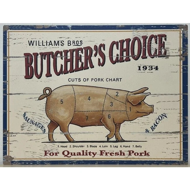 Wandbord Butchers Guide "Varken" Specificaties Afmetingen 33 x 25 cm  Materiaal Metaal Lees meer