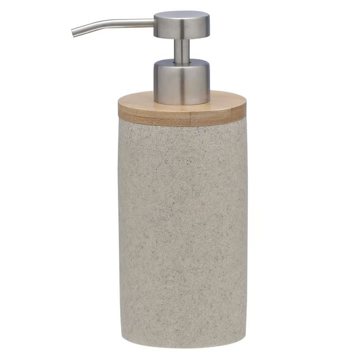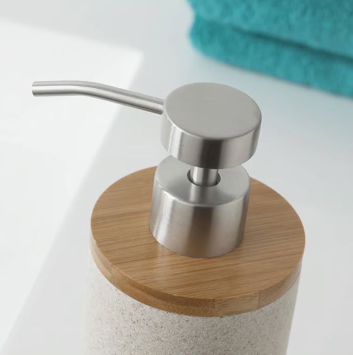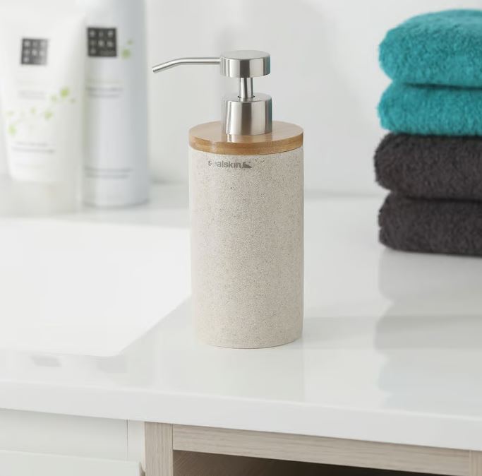 Gecombineerde materialen is de trend van nu. De Sealskin Grace serie in zandkleurig polyresin gecombineerd met bamboe accenten, sluit daar perfect bij aan. De zeepdispenser is eenvoudig te reinigen met een vochtige doek.